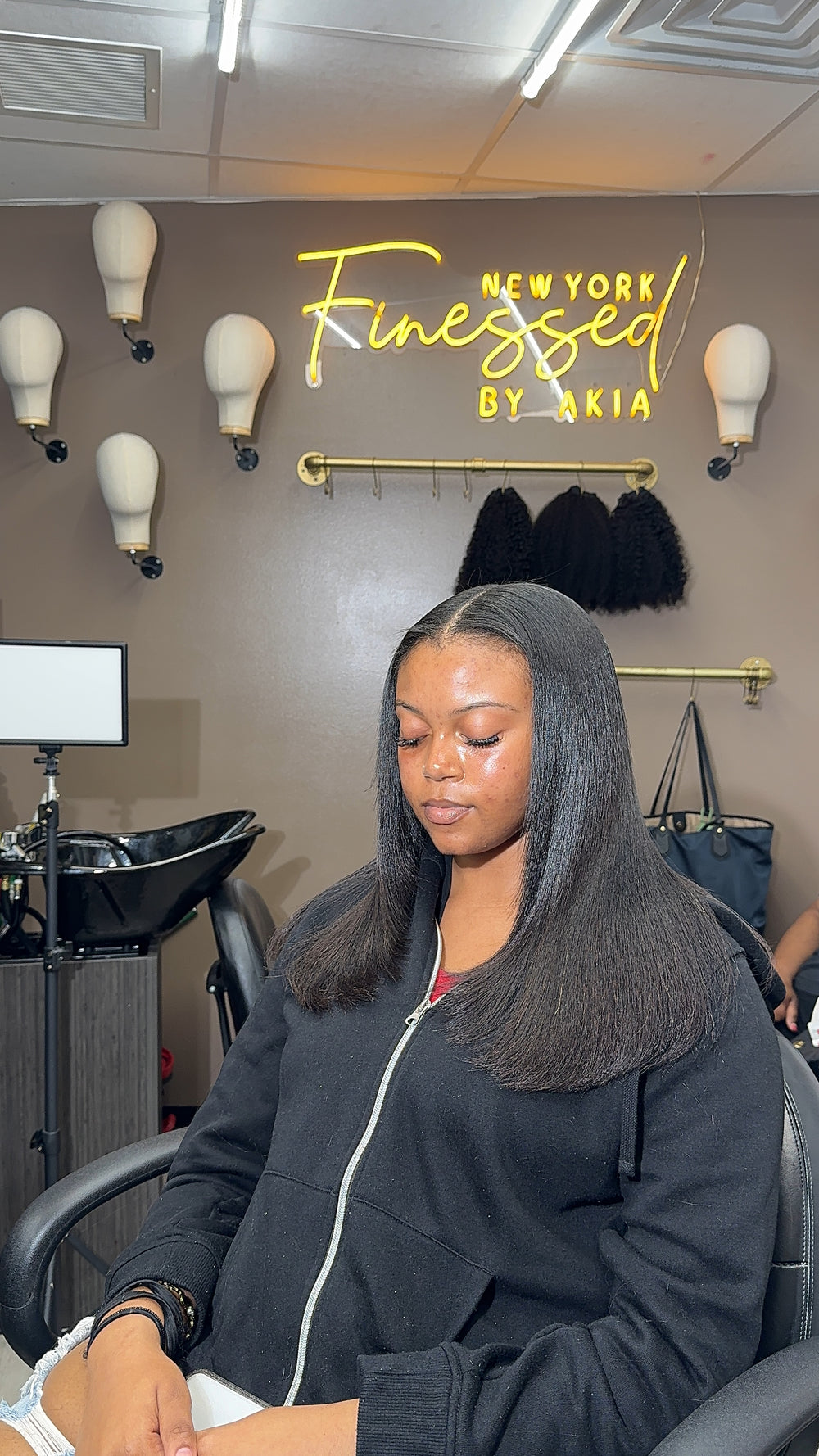 This is my first sew in over 15 years and the BLEND with my 4c hair is perfect! The color naturally matches my natural hair color. And when humidity is happening it he hair isn’t a shocking contrast of the texture. I’ve had people assume the hair is mine. I love it and I’ll be back for sure!